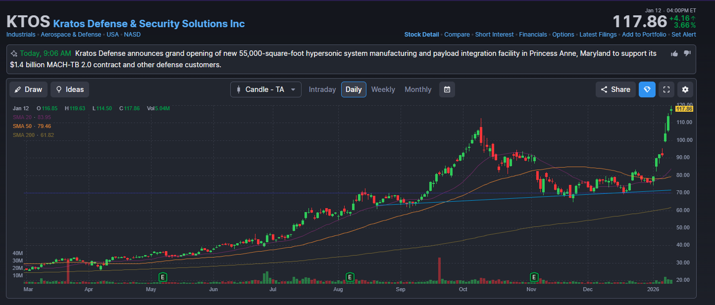 KTOS 주가 / 출처: FINVIZ