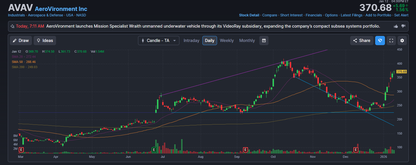 AVAV 주가 / 출처: FINVIZ