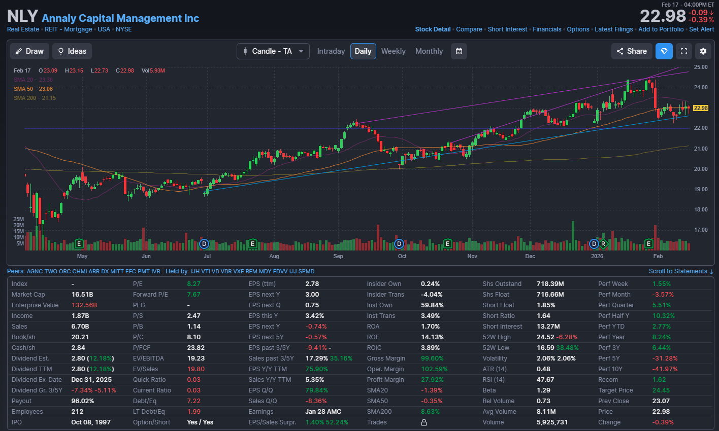 NLY, AGNC 주가차트 및 주가정보 / 출처: FINVIZ