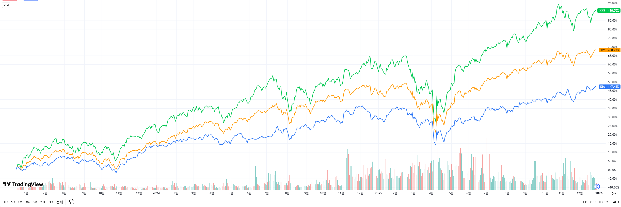 하지만 이 지수들을 추종하는 ETF에 투자하면 이야기가 달라집니다.