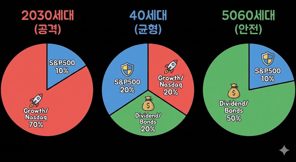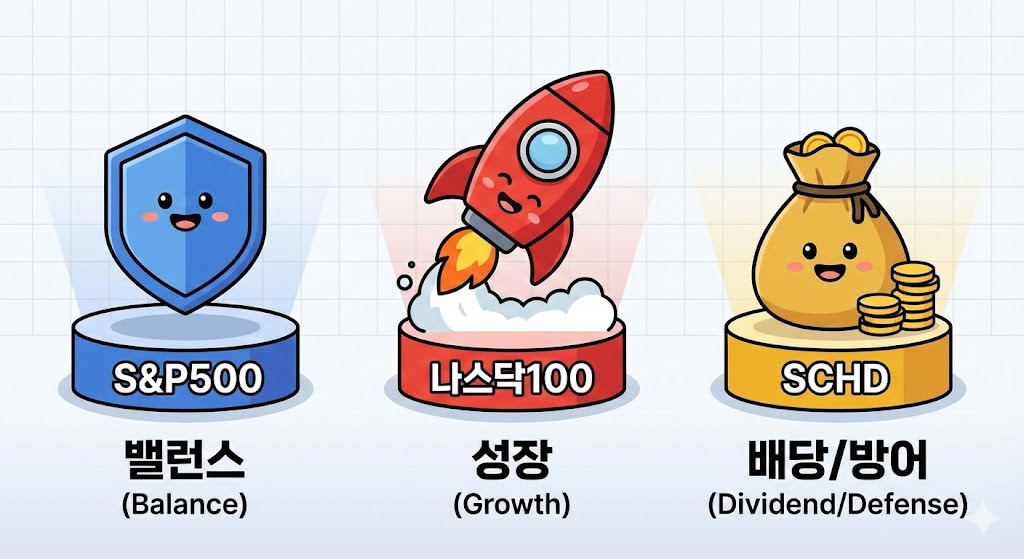 (가장 든든한 S&P500을 중심(Core)에 두고, 나스닥으로 수익을, SCHD로 현금흐름 맛보기를 시작하세요.)