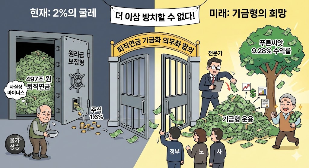 결국 정부와 노사정은 결단을 내렸습니다. "더 이상 국민의 노후 자금을 방치할 수 없다."