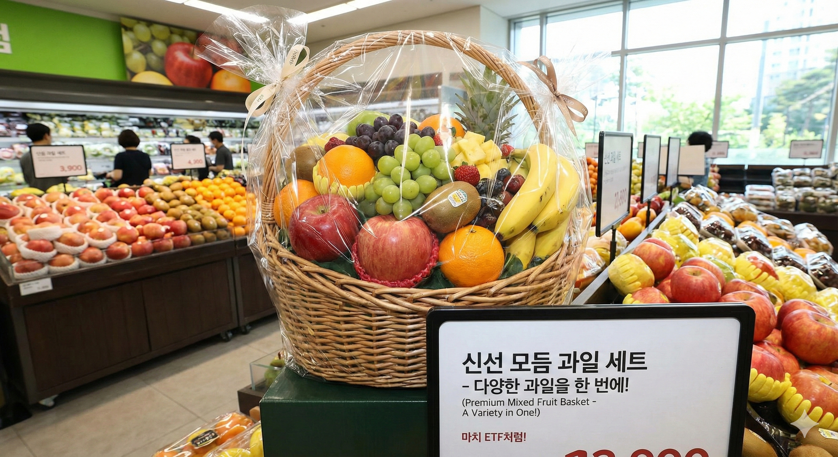 이때 점원이 '종합 과일 바구니'를 내밉니다.