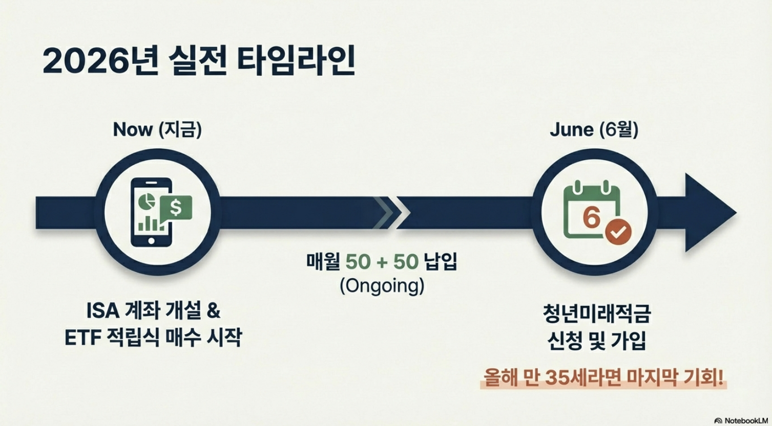 매달 100만 원을 50만 원씩 쪼개서, 하나는 **'정부 지원금'**을 챙기고, 하나는 **'시장 수익률'**을 챙기는 거죠.