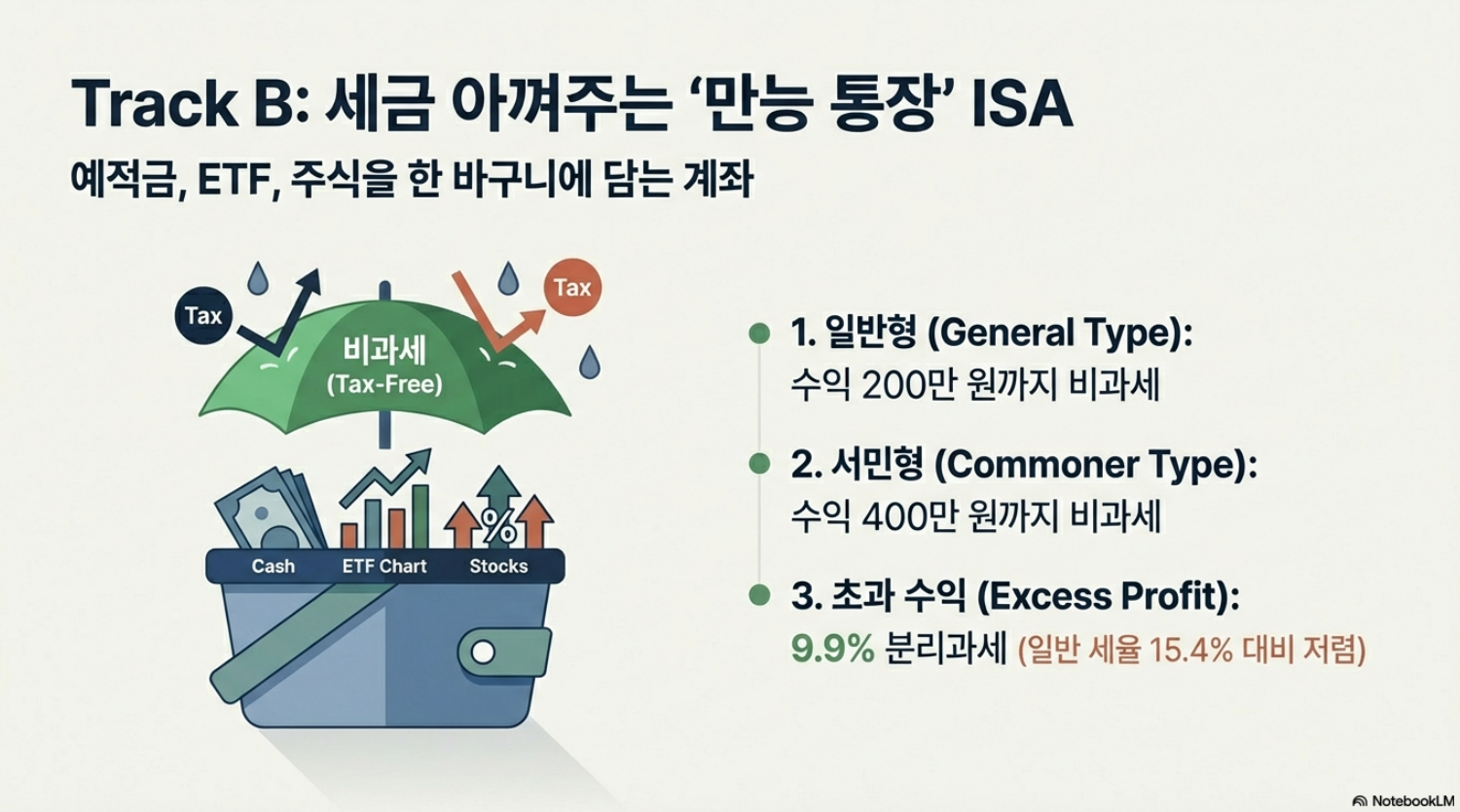 Track B(ISA 투자)로 자산을 불리는 구조예요.