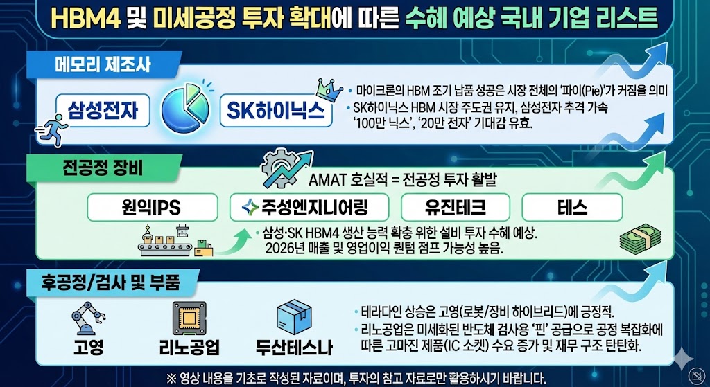 HBM4 및 미세공정 투자 확대에 따라 재무적 성장이 기대되는 기업들을 정리했습니다.